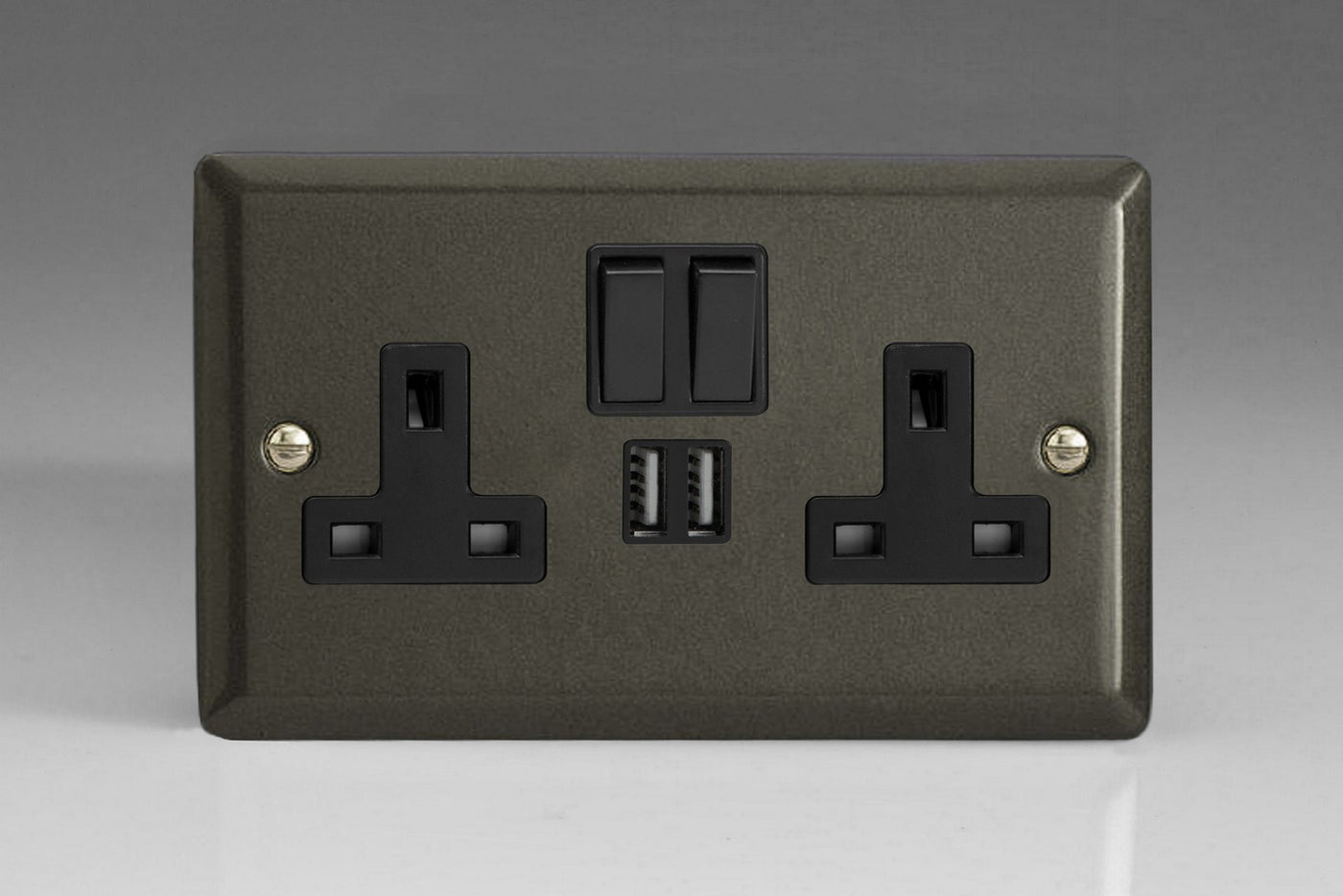 Varilight XP5U2SB - 2-Gang 13A Single Pole Switched Socket + 2x5V DC 2100mA USB Charging Ports