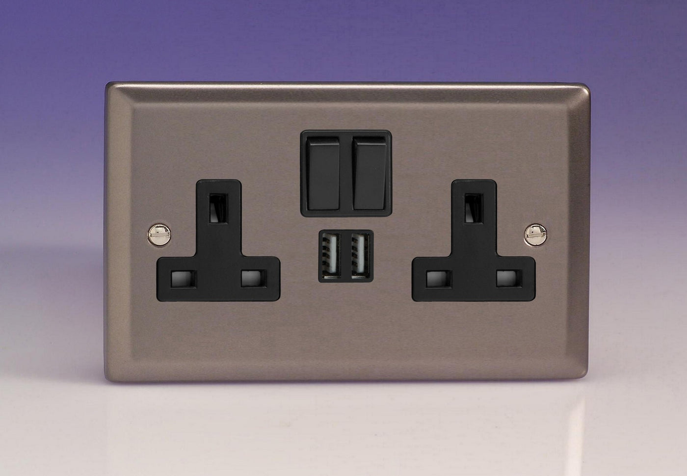 Varilight XR5U2SB - 2-Gang 13A Single Pole Switched Socket + 2x5V DC 2100mA USB Charging Ports