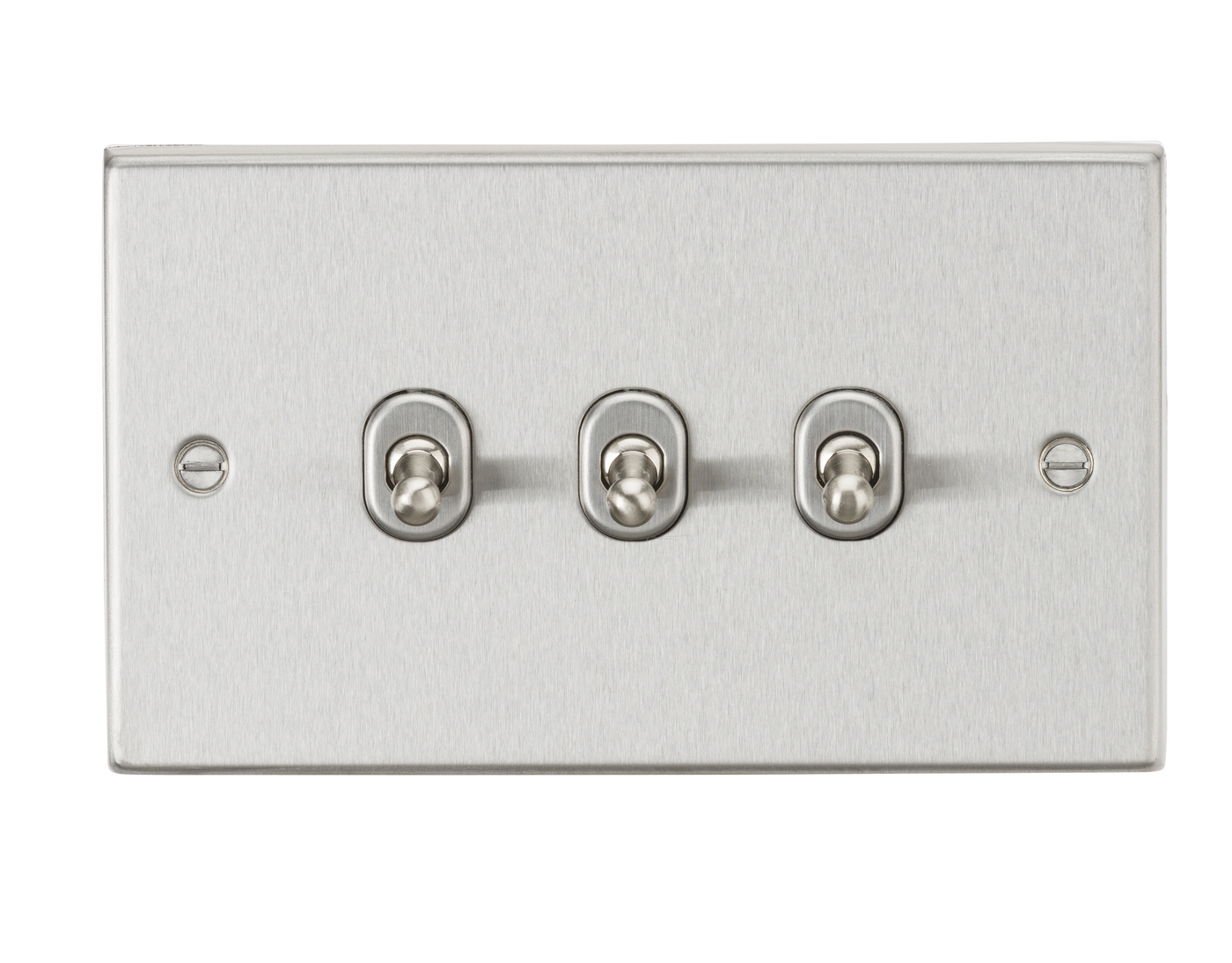 Knightsbridge CSTOG3BC 10AX 3G 2-Way Toggle Switch - Square Edge Brushed Chrome Finish