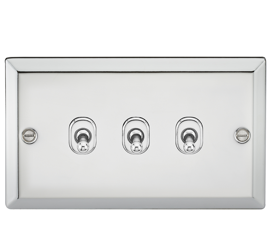 Knightsbridge CVTOG3PC 10AX 3G 2 Way Toggle Switch - Bevelled Edge Polished Chrome