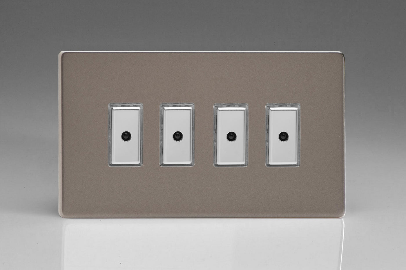 Varilight JDRE104S - 4-Gang 1-Way V-Pro Multi-Point Remote/Tactile Touch Control Master LED Dimmer 4 x 0-100W (1-10 LEDs) (Twin Plate)