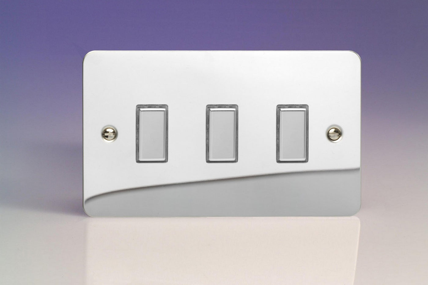 Varilight JFCES003 - 3-Gang Tactile Touch Control Dimming Slave for use with Multi-Point (formerly Eclique2) Master on 2-Way Circuits (Twin Plate)