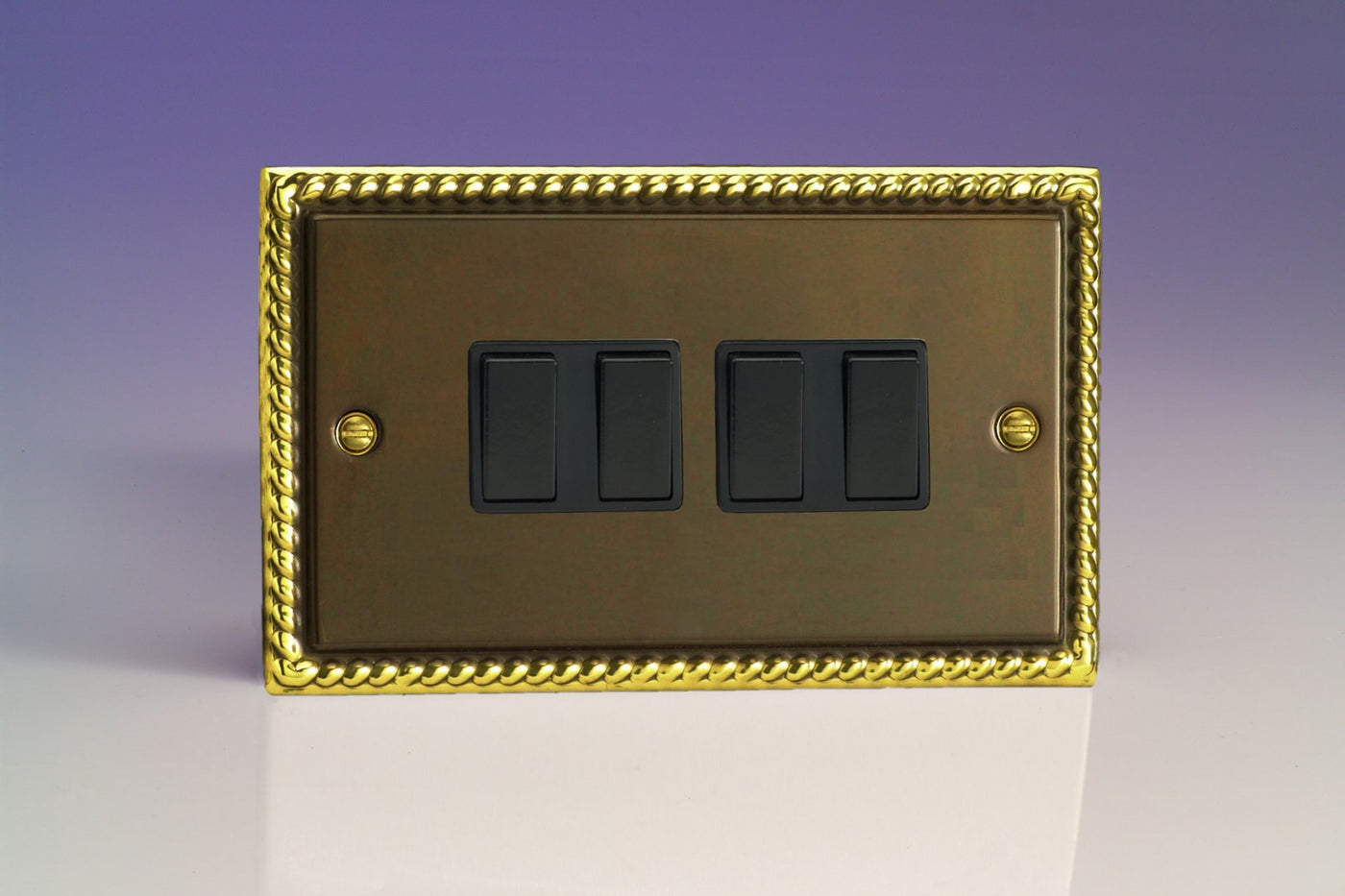 Varilight XA9B - 4-Gang 10A 1- or 2-Way Rocker Switch (Twin Plate)