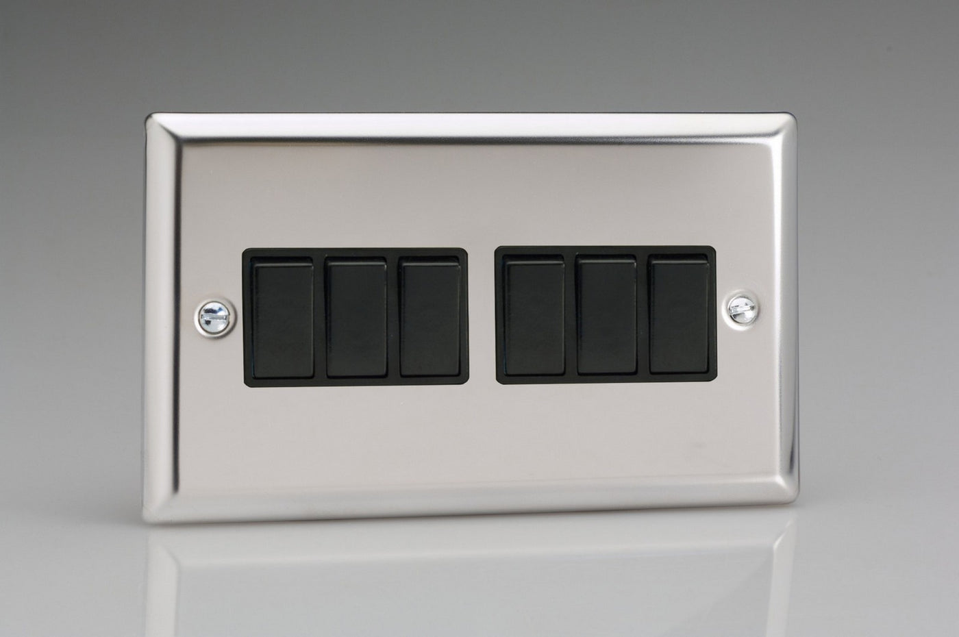 Varilight XC96B - 6-Gang 10A 1- or 2-Way Rocker Switch (Twin Plate)