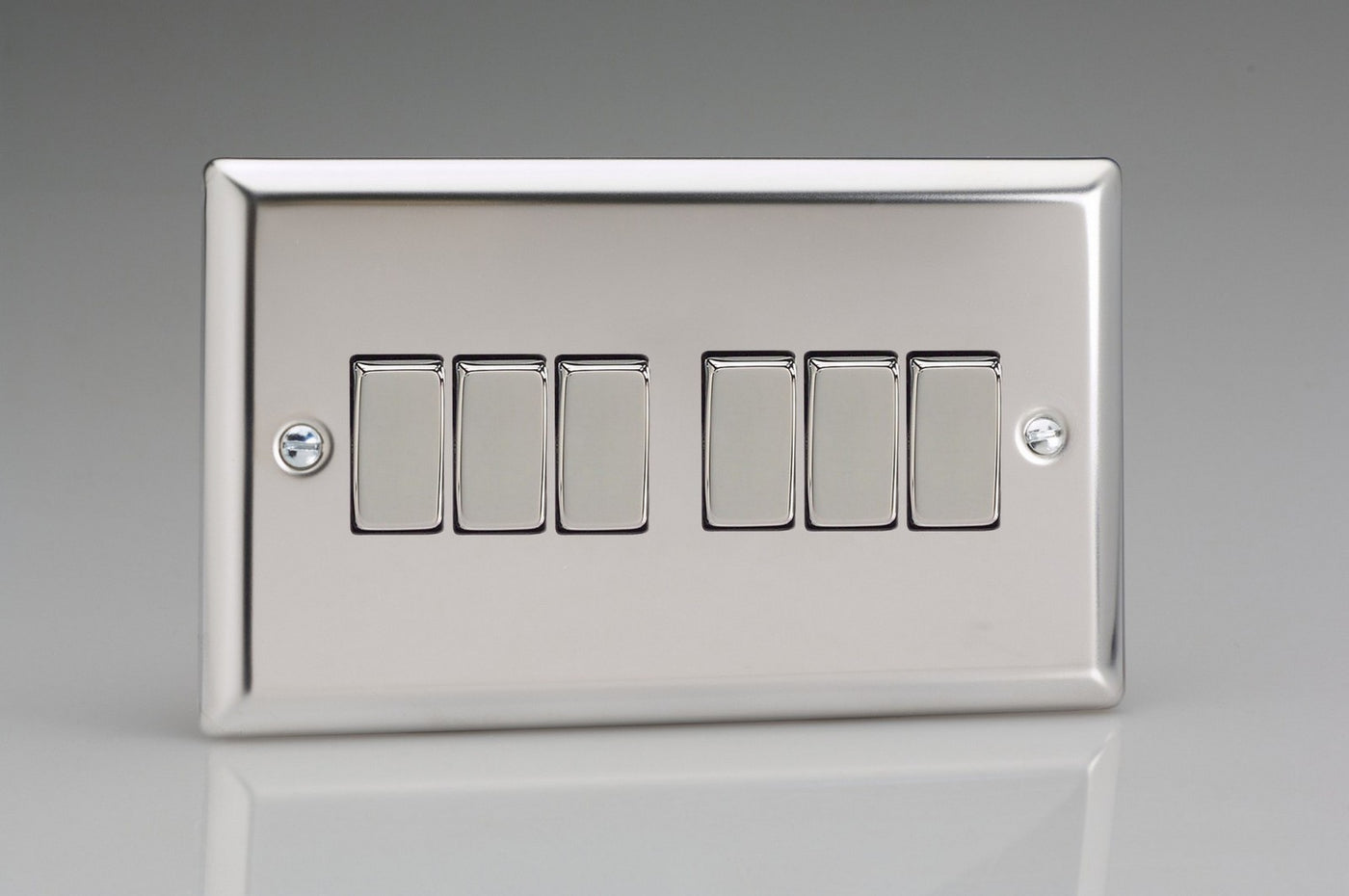 Varilight XC96D - 6-Gang 10A 1- or 2-Way Rocker Switch (Twin Plate)