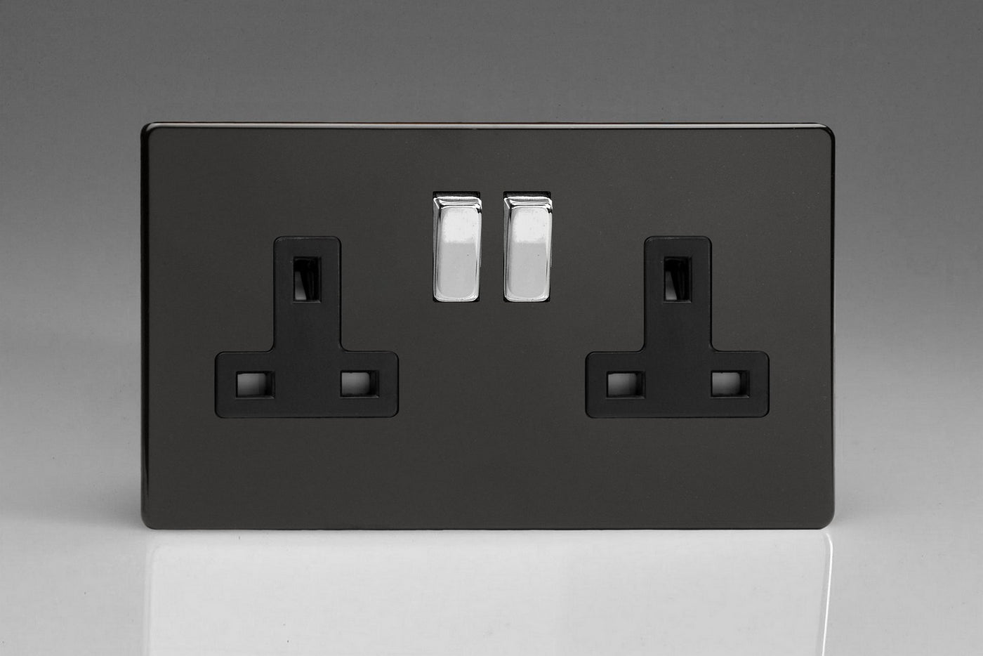 Varilight XDL5BS - 2-Gang 13A Double Pole Switched Socket with Metal Rockers
