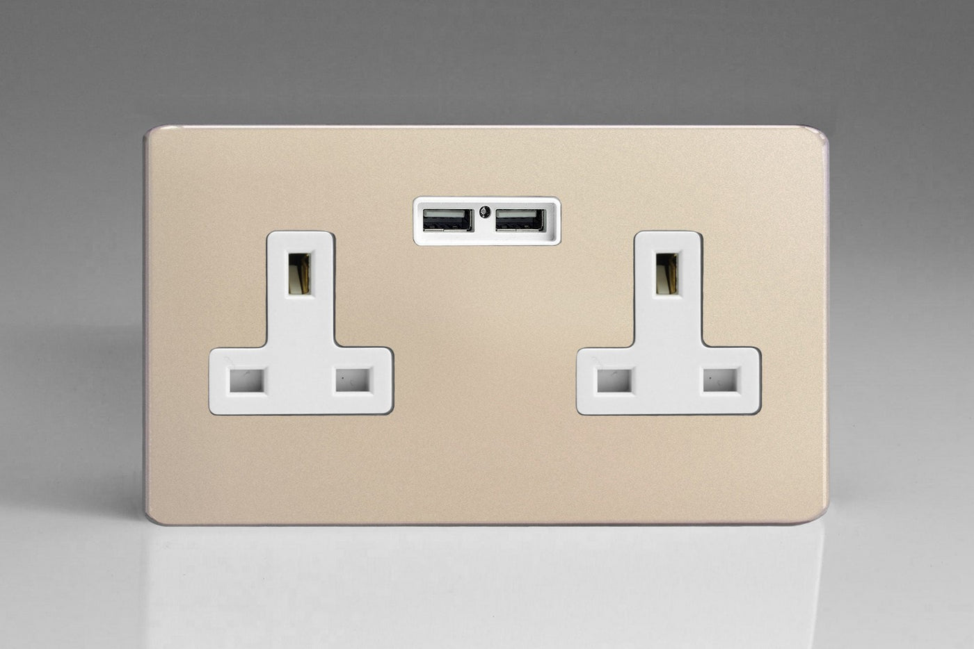 Varilight XDN5U2WS - 2-Gang 13A Unswitched Socket + 2x5V DC 2100mA USB Charging Ports