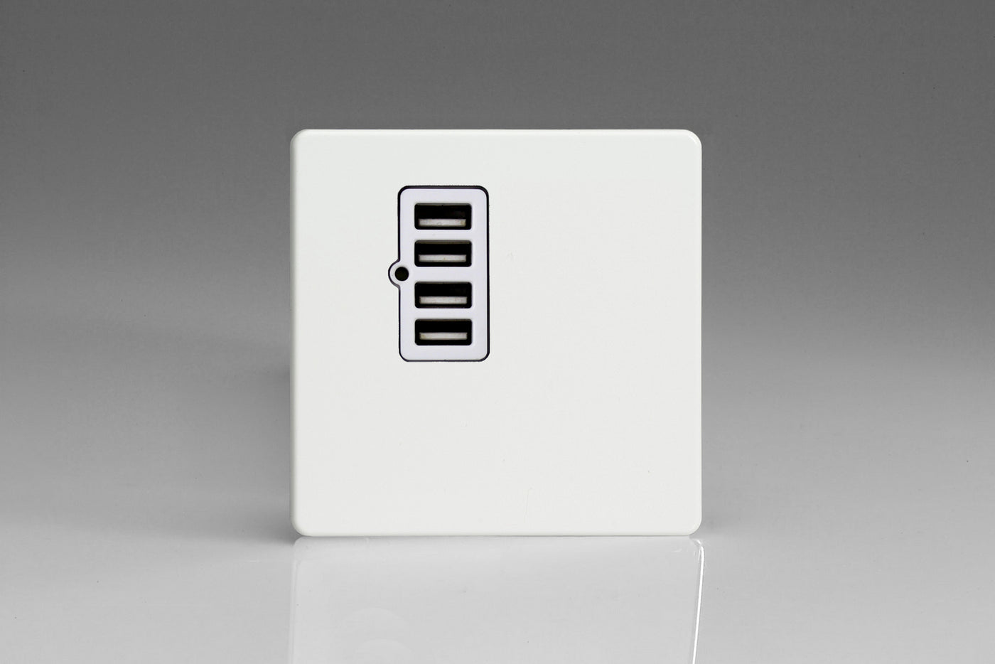 Varilight XDQU4WS - 4 Gang 5V DC 4800mA USB Charging Port (Single Plate)