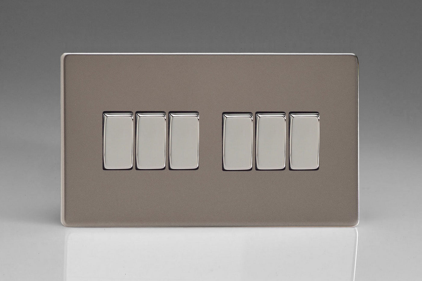 Varilight XDR96S - 6-Gang 10A 1- or 2-Way Rocker Switch (Twin Plate)