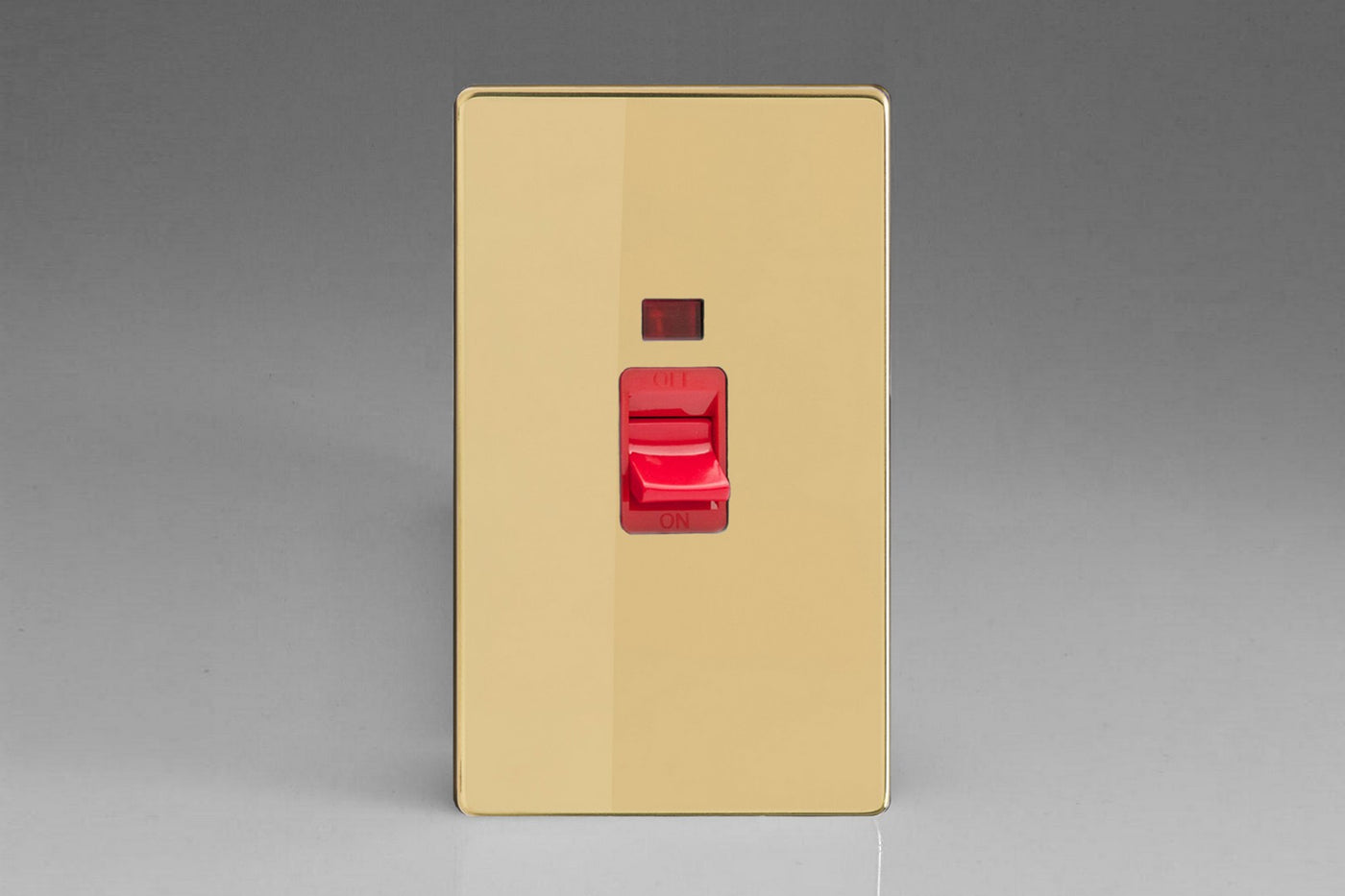 Varilight XDV45NS - 45A Cooker Switch + Neon (Vertical Twin Plate, Red Rocker)
