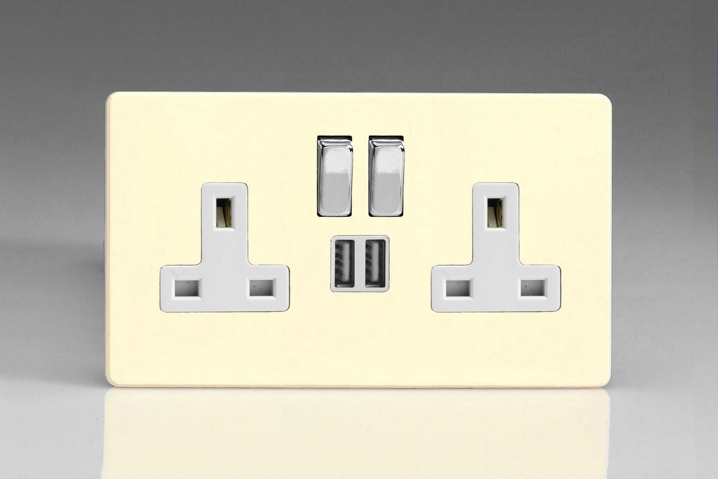 2-Gang 13A Single Pole Switched Socket with Metal Rockers + 2x5V DC 2100mA USB Charging Ports , Ideal for charging iPad, iPhone, tablets, mobiles and cameras, Features VARILIGHT Smart Port technology making it suitable for all types of devices., Features VARILIGHT Smart Port technology making it suitable for all types of devices..
