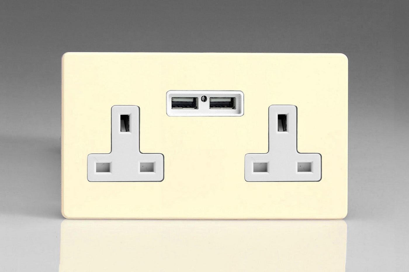 Varilight XDW5U2WS - 2-Gang 13A Unswitched Socket + 2x5V DC 2100mA USB Charging Ports