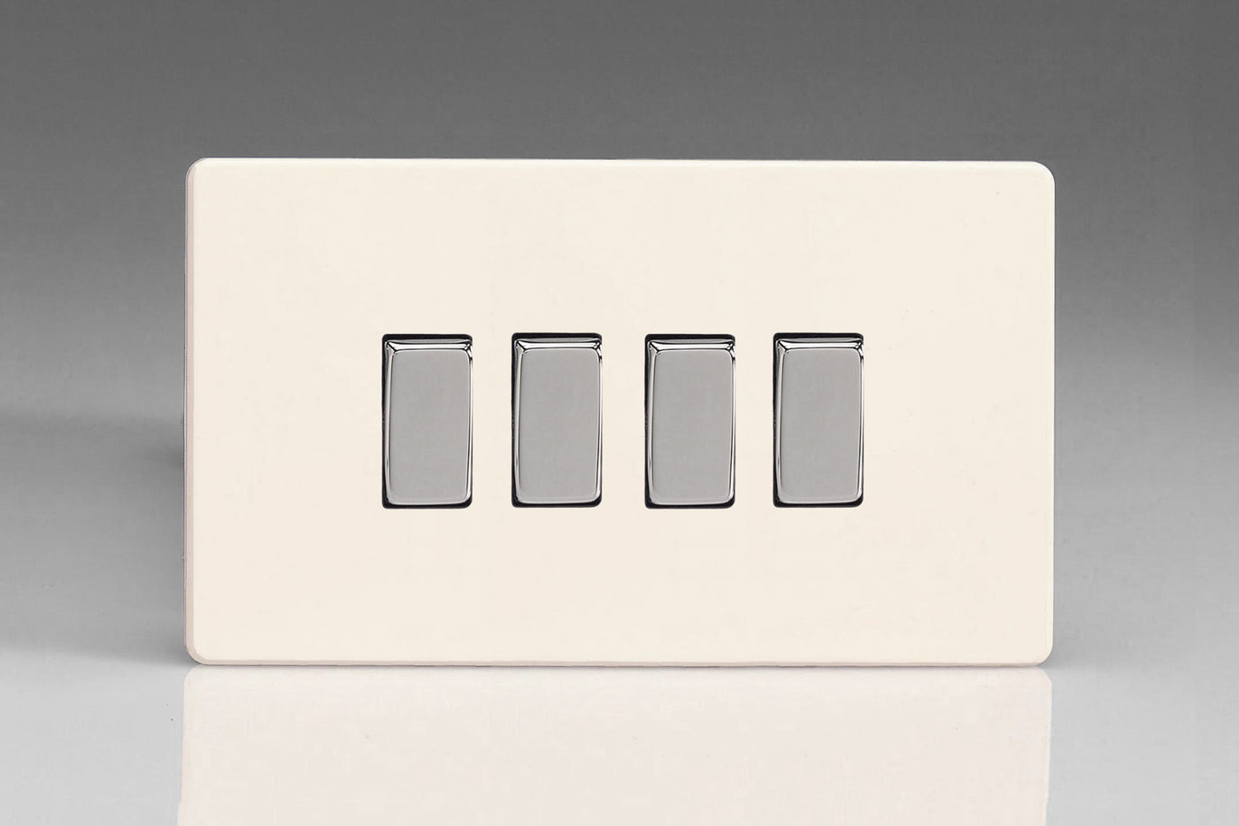 Varilight XDY9S.PD - 4-Gang 10A 1- or 2-Way Rocker Switch (Twin Plate)