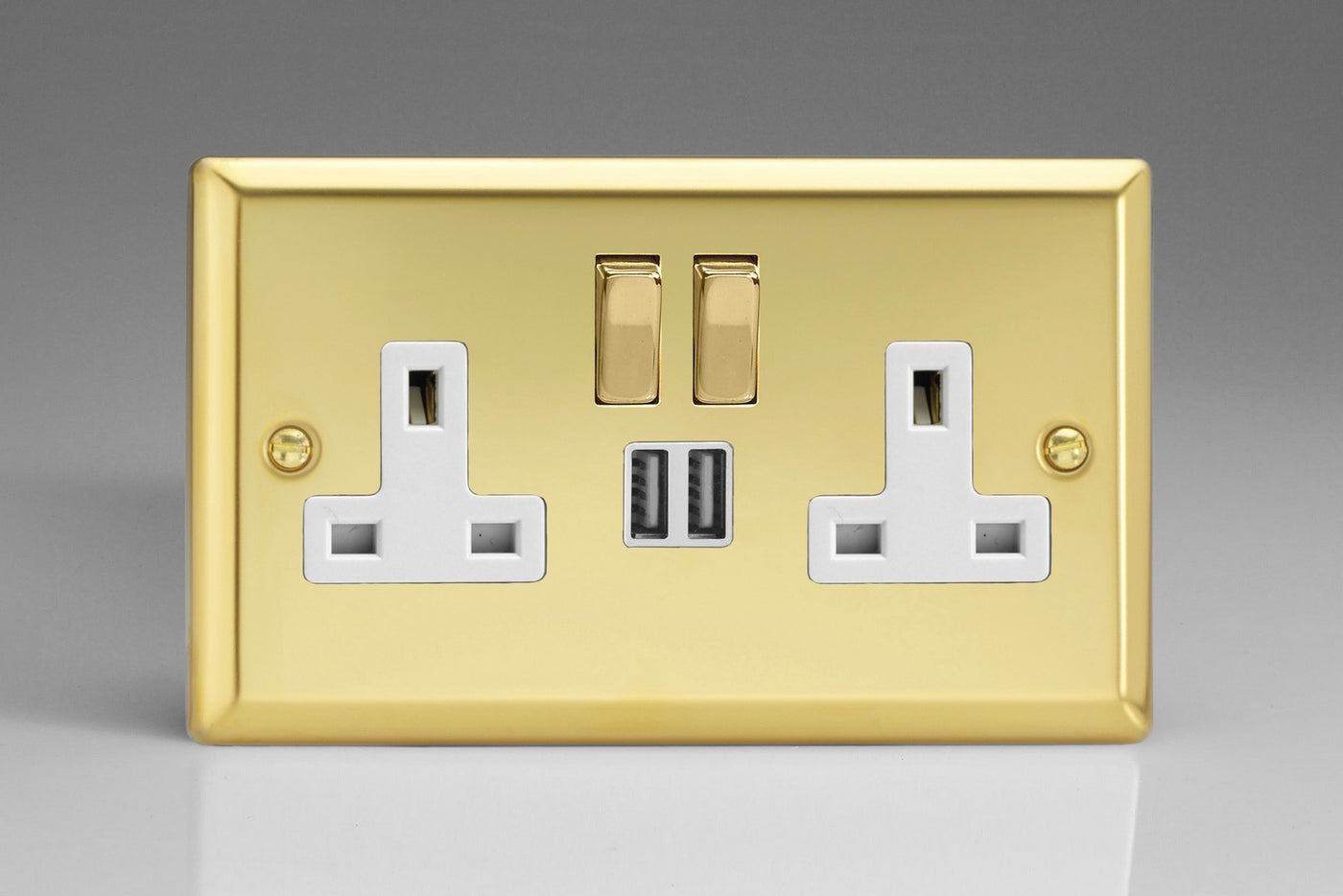 2-Gang 13A Single Pole Switched Socket with Metal Rockers + 2x5V DC 2100mA USB Charging Ports , Ideal for charging iPad, iPhone, tablets, mobiles and cameras, Features VARILIGHT Smart Port technology making it suitable for all types of devices., Features VARILIGHT Smart Port technology making it suitable for all types of devices..