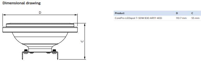 30538000 - Philips - CorePro LEDspot 7-50W 830 AR111 40D Non Dimmable - P36L7WF-83-PH