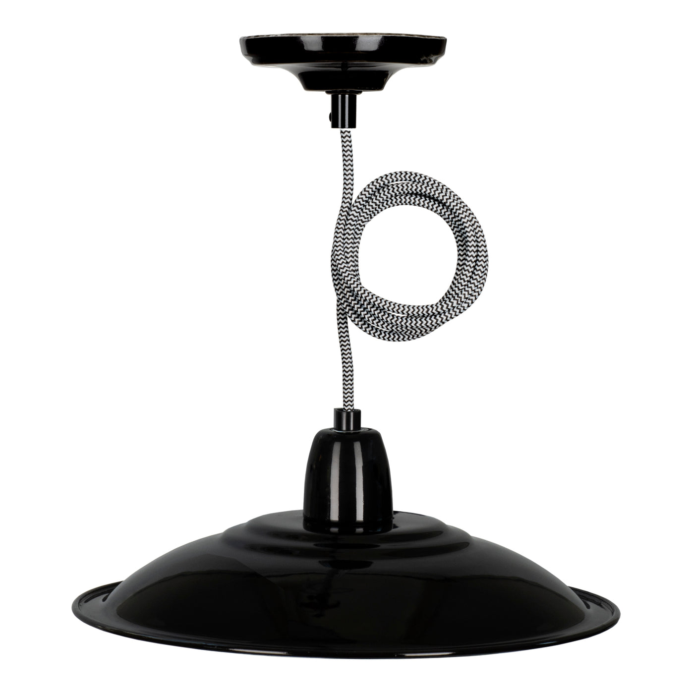 BAI Pendant Light Cult S E27 Enamel Lampshade Black 280x40mm 1.5M Textile Cable Black/White 2x0.75mm² and Ceiling Cup CLII Max 60W
