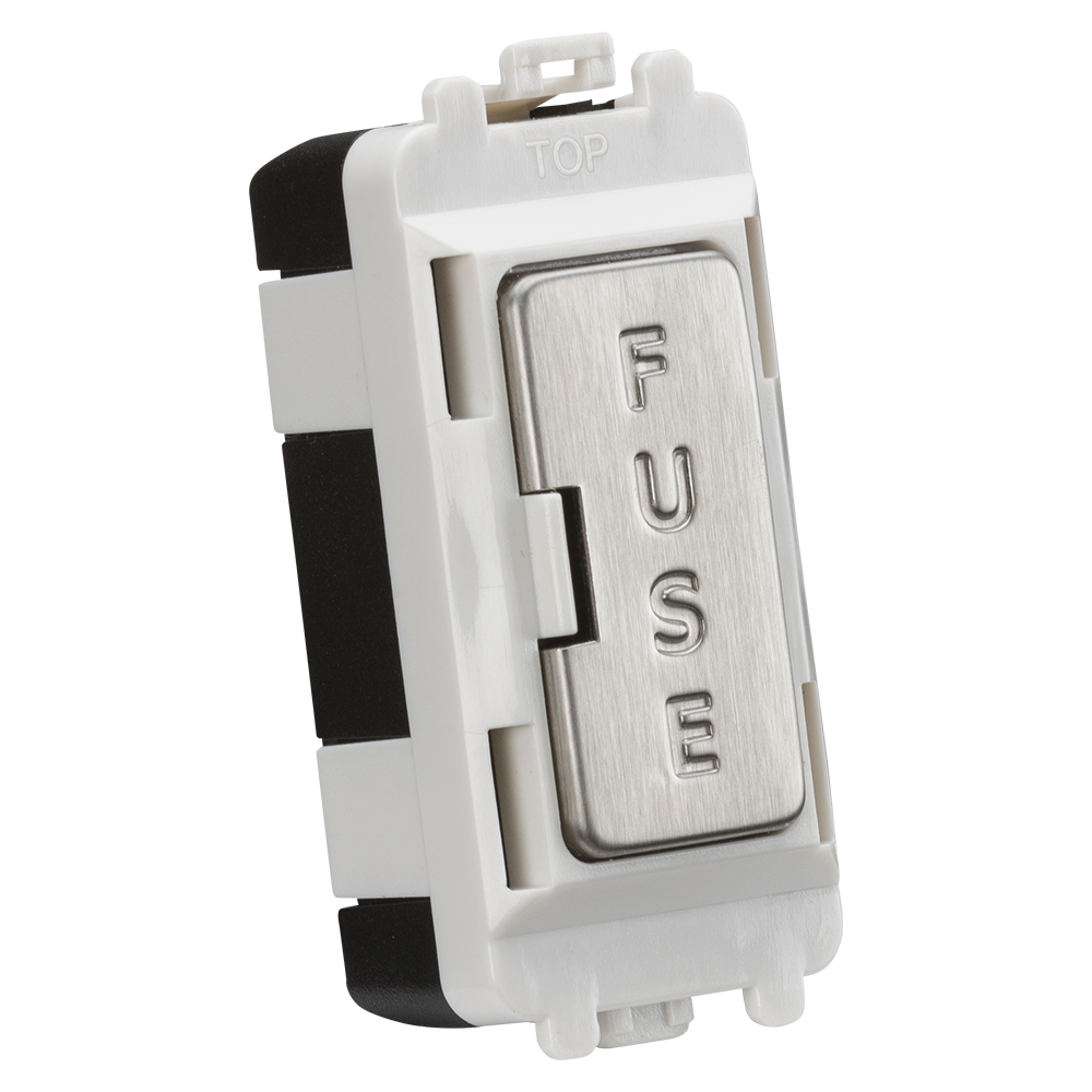 For appliance protection circuits, supplied with replaceable 13A fuse. Part of the Knightsbridge Grid system. Module simply clips into position from the front of the mounting frames (sold separately)
