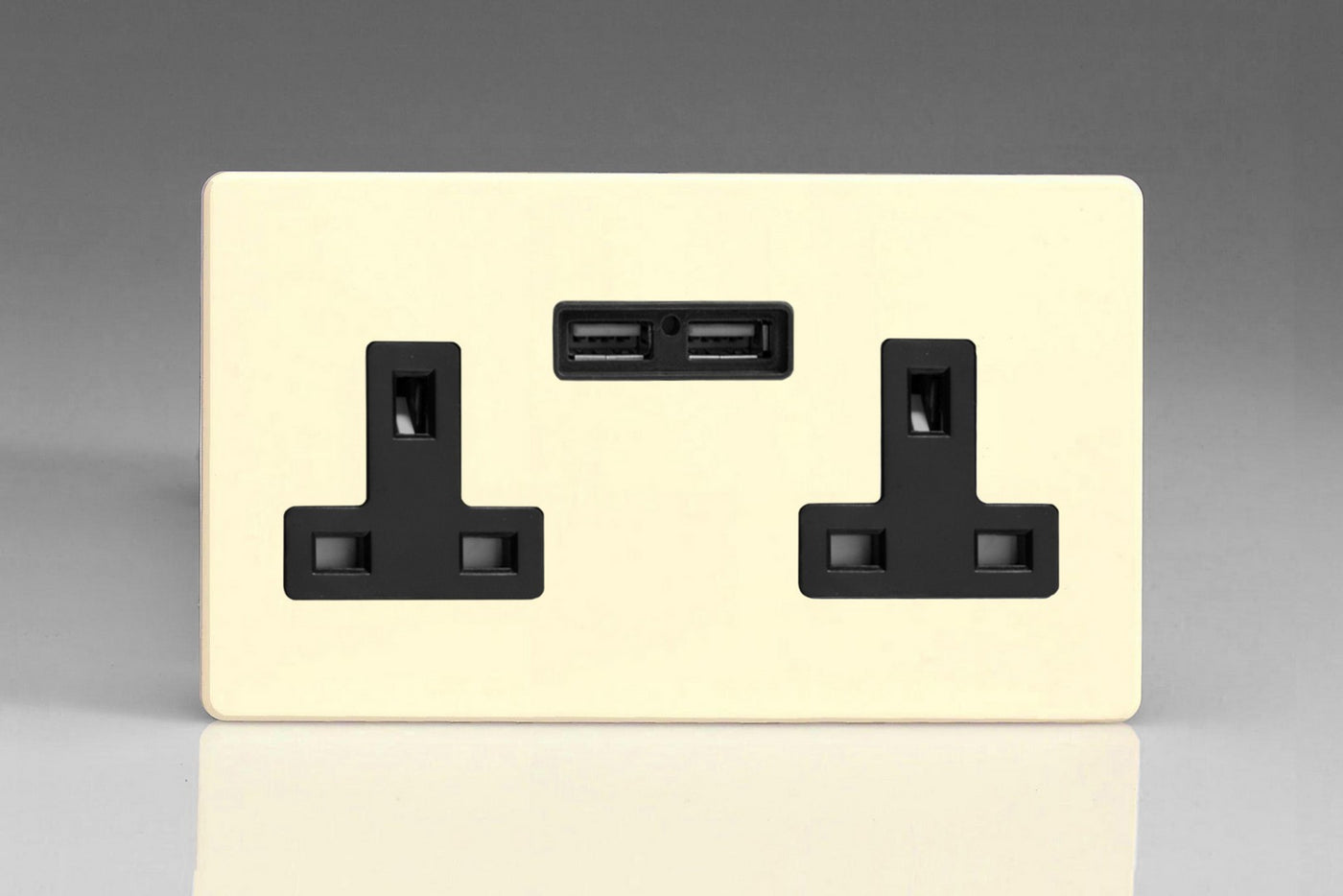Varilight XDY5U2BS.PD - 2-Gang 13A Single Pole Switched Socket + 2 5V DC 2100mA USB Charging Ports